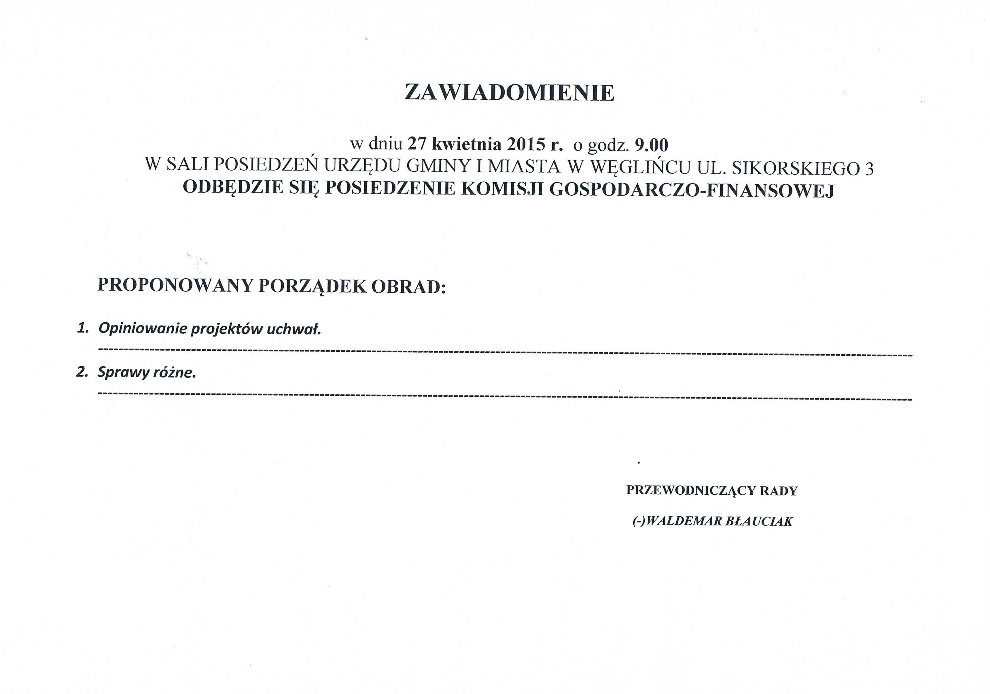 POSIEDZENIE KOMISJI GOSPODARCZO- FINANSOWEJ- 27.04.2015 r.